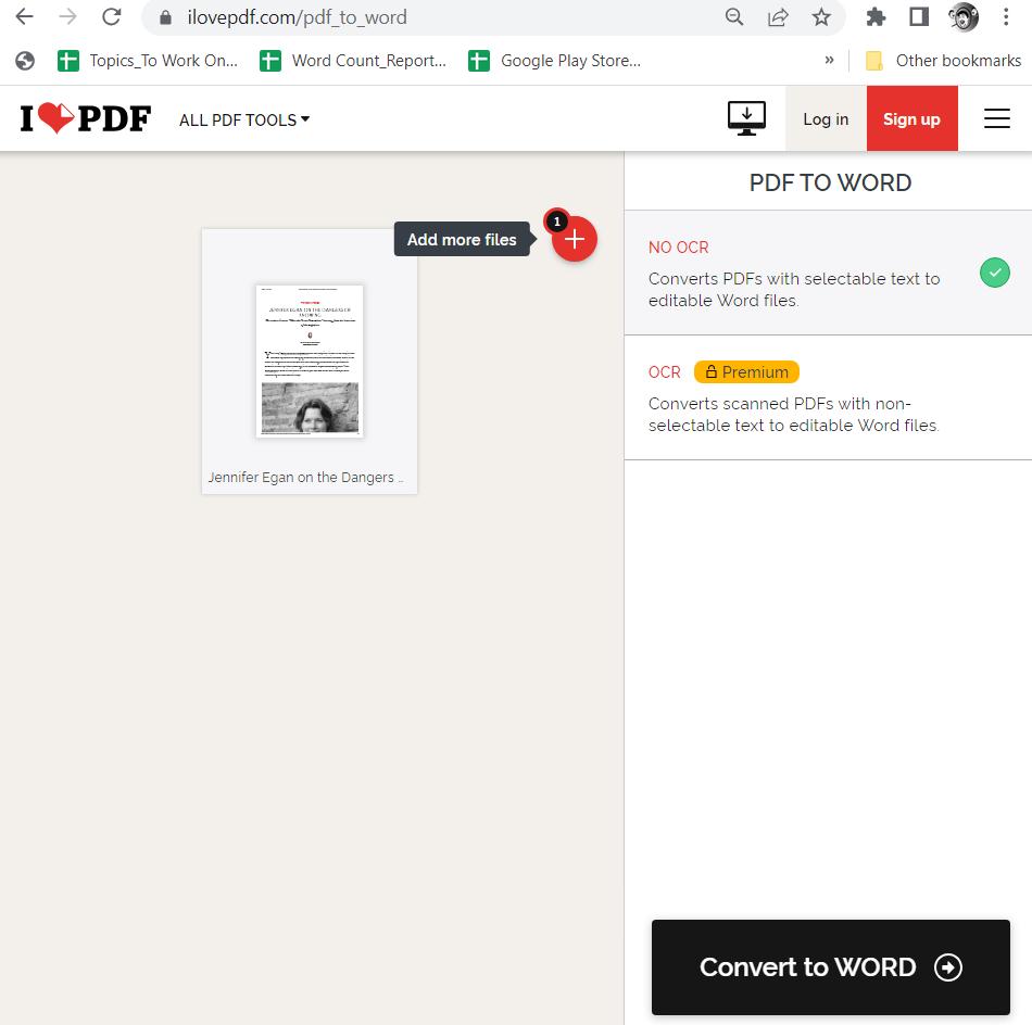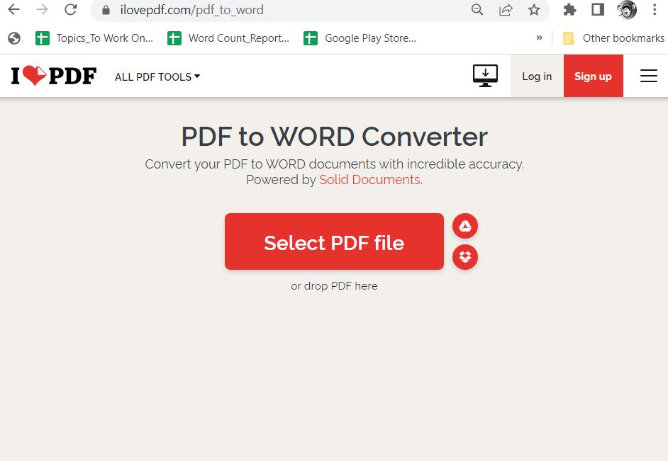 Τελευταίο αλλά εξίσου σημαντικό, αν έχετε ένα ζευγάρι ή μερικά ακόμη PDFs για να μετατραπεί σε λέξη, μπορείτε να πυροβολήσετε το πρόγραμμα περιήγησής σας και να μετατρέψετε το PDF σε μορφή λέξης online. Το Ilovepdf είναι μία από τις καλύτερες ηλεκτρονικές πλατφόρμες που σας βοηθούν να μετατρέψετε το PDF σε λέξη με τρόπο χωρίς προβλήματα.