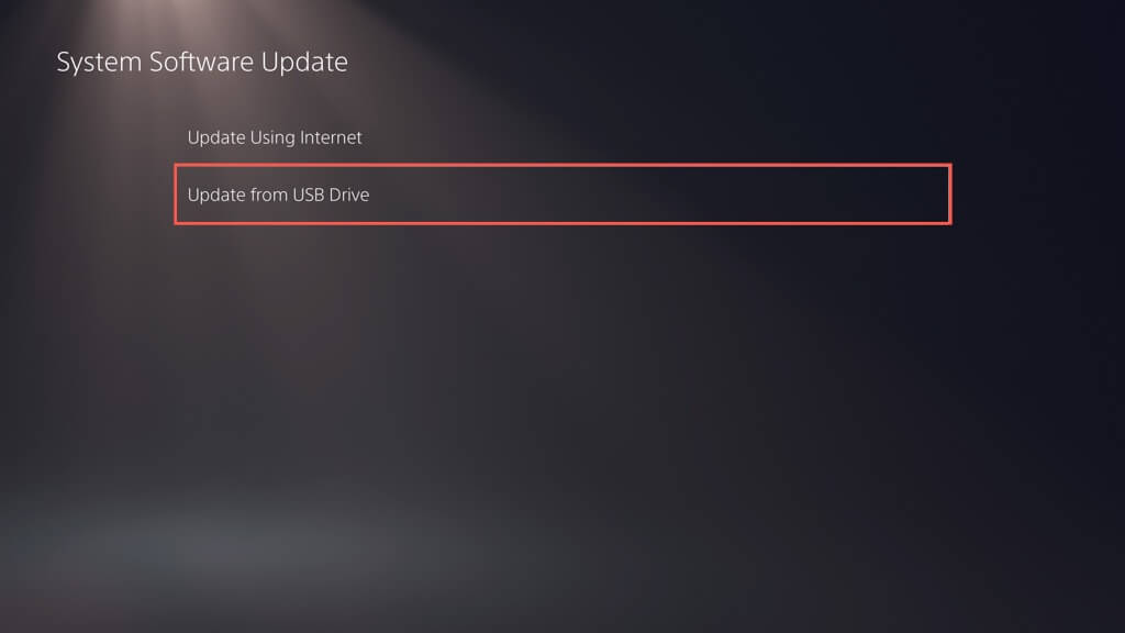 - ΕπιλέγωΕνημέρωση χρησιμοποιώντας το Διαδίκτυο. Εάν αυτό αποτύχει, συνδέστε μια μονάδα flash USB με το αρχείο ενημέρωσης λογισμικού συστήματος PS5 και δοκιμάστε τοΕνημέρωση από τη μονάδα USBεπιλογή.