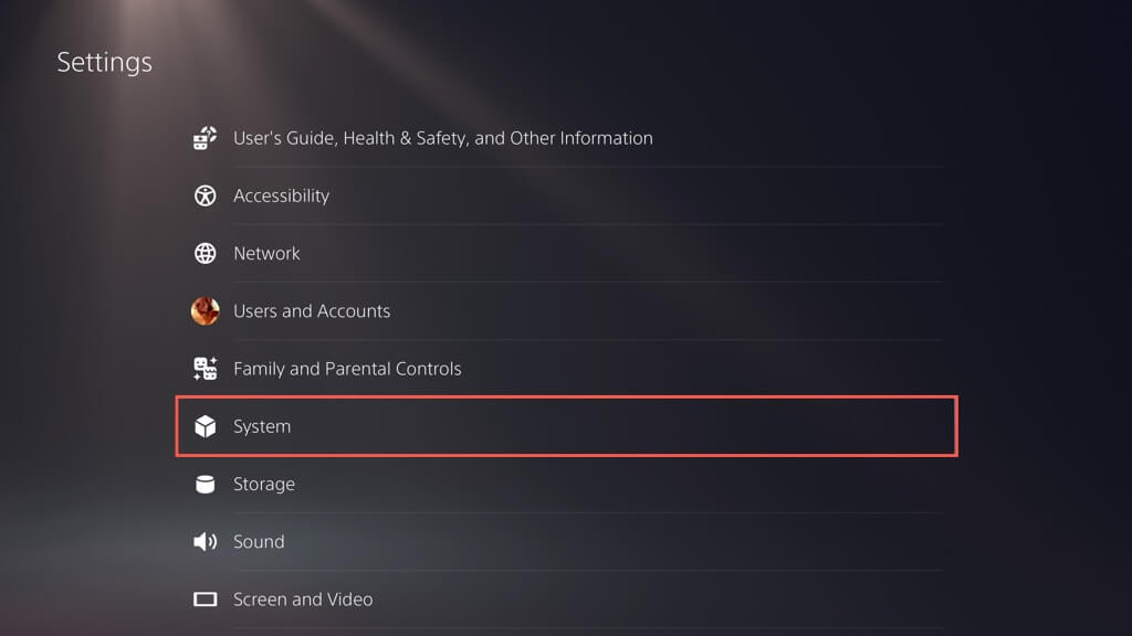- ΕπιλέγωΡυθμίσειςΣτην επάνω δεξιά γωνία της αρχικής οθόνης του PS5.