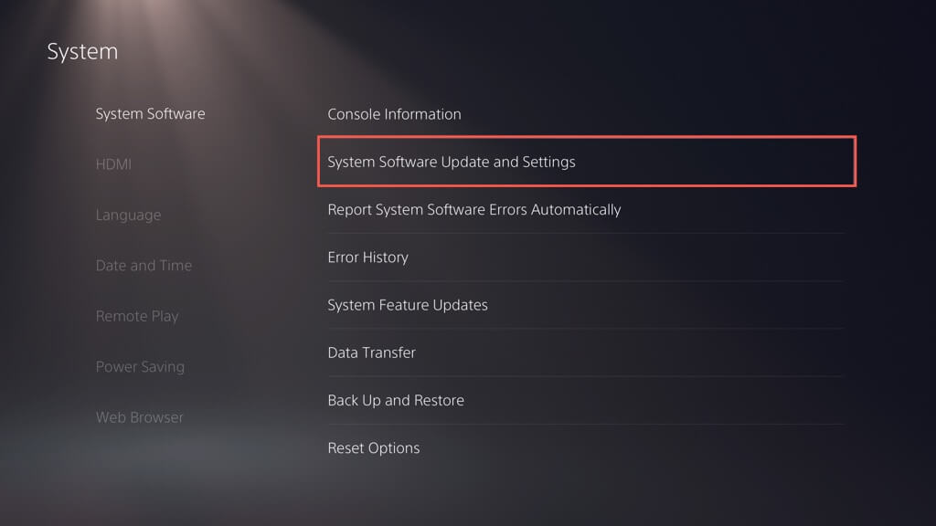 - Επισκεφθείτε την οθόνη ρυθμίσεων του PS5 και μεταβείτεΣύστημα>Λογισμικό συστήματος>Ενημέρωση λογισμικού συστήματοςκαι ρυθμίσεις>Ενημέρωση λογισμικού συστήματος.