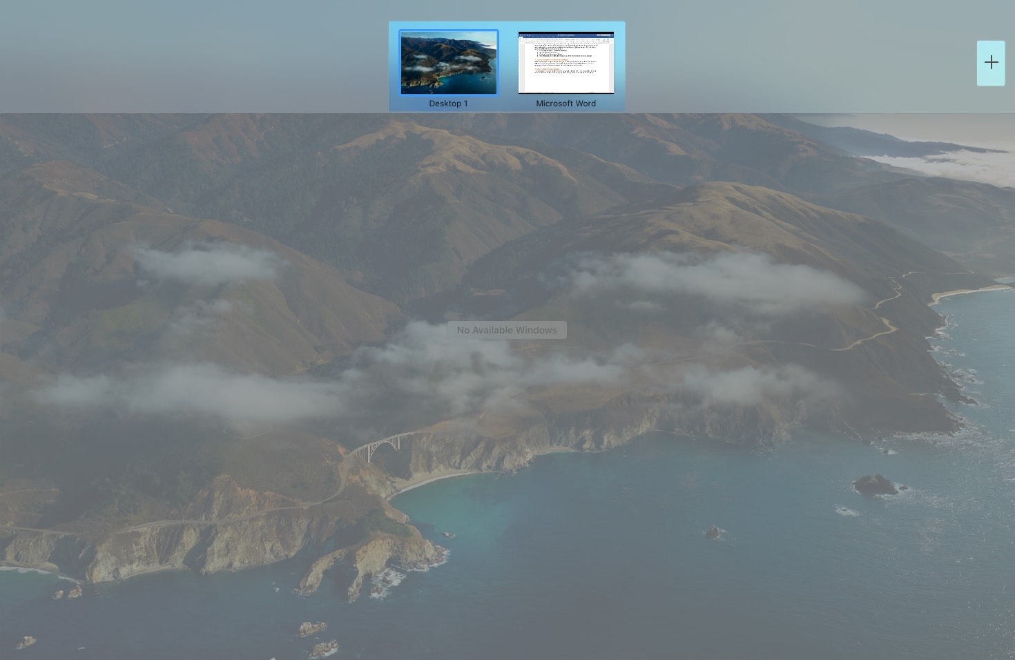 Ευτυχώς, το Mac σας σας επιτρέπει να δημιουργείτε πολλαπλούς εικονικούς επιτραπέζιους υπολογιστές. Για να το κάνετε αυτό, εισαγάγετε τον έλεγχο της αποστολής και κάντε κλικ στοΠροσθήκη (+) εικονίδιο.