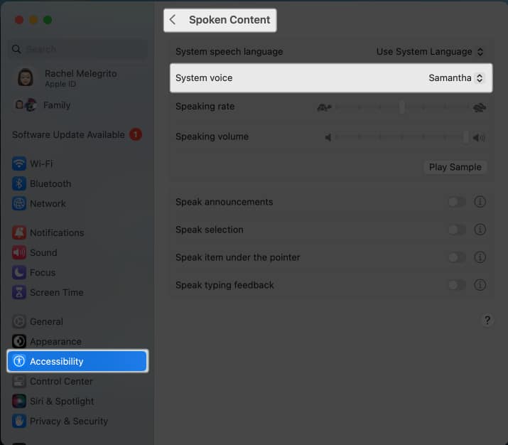 Εάν θέλετε να επεκτείνετε περαιτέρω την εξατομίκευση, μπορείτε να πάτεΡυθμίσεις συστήματος→Προσιτότητα→ΟμιλούμενοςΠεριεχόμενο→Φωνή συστήματος.