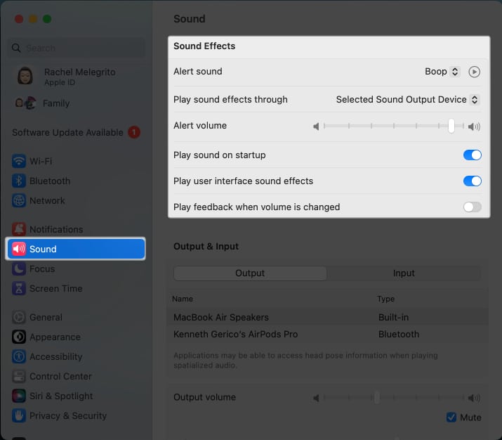 Μπορείτε επίσης να προσαρμόσετε τους ήχους ειδοποίησης σας στο Mac σας πηγαίνονταςΡυθμίσεις συστήματος→Ήχος→Ηχητικά εφφέ.