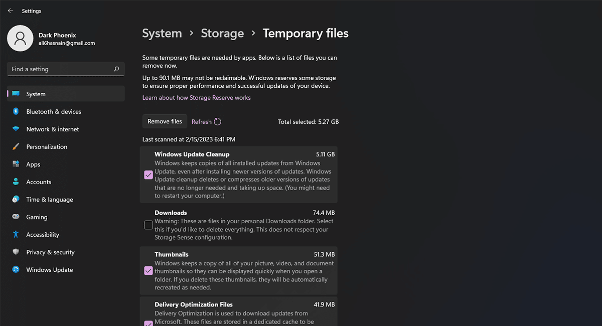 Καθαρισμός προσωρινών αρχείων αποθήκευσης