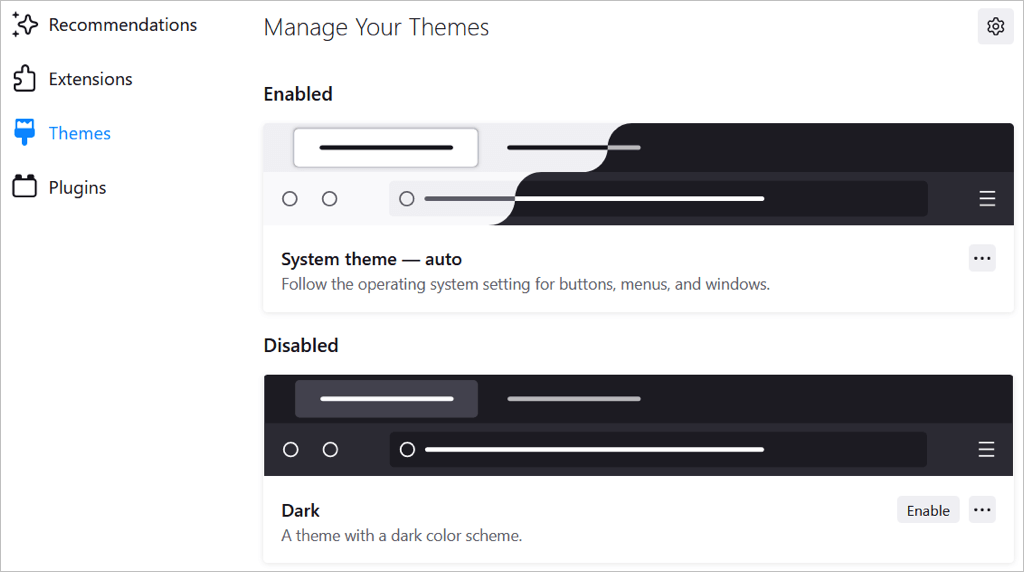 Στη συνέχεια, θα δείτε το τμήμα διαχείρισης των θεμάτων σας των ρυθμίσεων του προγράμματος περιήγησης. Θέματα που εγκαθιστάτε την οθόνη στην κορυφή είτε στην ενότητα Ενεργοποιημένη είτε με ειδικές ανάγκες. Αυτό σας επιτρέπει να εγκαταστήσετε διάφορα θέματα και απλά να επιλέξετεΚαθιστώ ικανόγια αυτό που θέλετε εκείνη τη στιγμή.
