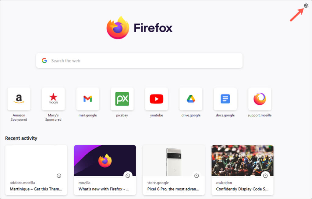 Μπορείτε επίσης να αλλάξετε γρήγορα αυτό που βλέπετε στην αρχική σας σελίδα χρησιμοποιώντας τογρανάζιεικονίδιο στην επάνω δεξιά πλευρά του.