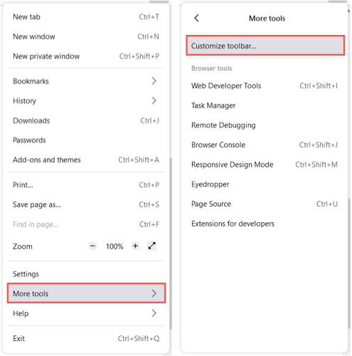 Ανοίγω τοΜενού εφαρμογήςμε τις τρεις γραμμές στην επάνω δεξιά γωνία. ΕπιλέγωΠερισσότερα εργαλείακαι επιλέξτεΠροσαρμογή της γραμμής εργαλείων.