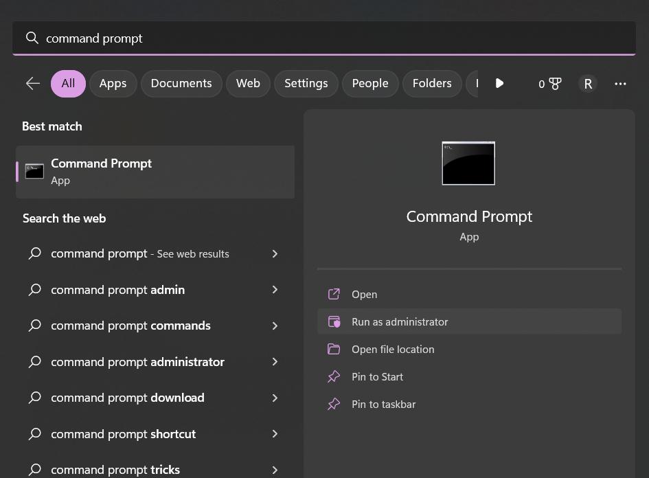 Βήμα 1:Πατήστε στο εικονίδιο αναζήτησης τοποθετημένο στη γραμμή εργασιών, πληκτρολογήστε "Προτροπή εντολών"Και επιλέξτε"Εκτελέστε ως διαχειριστής".