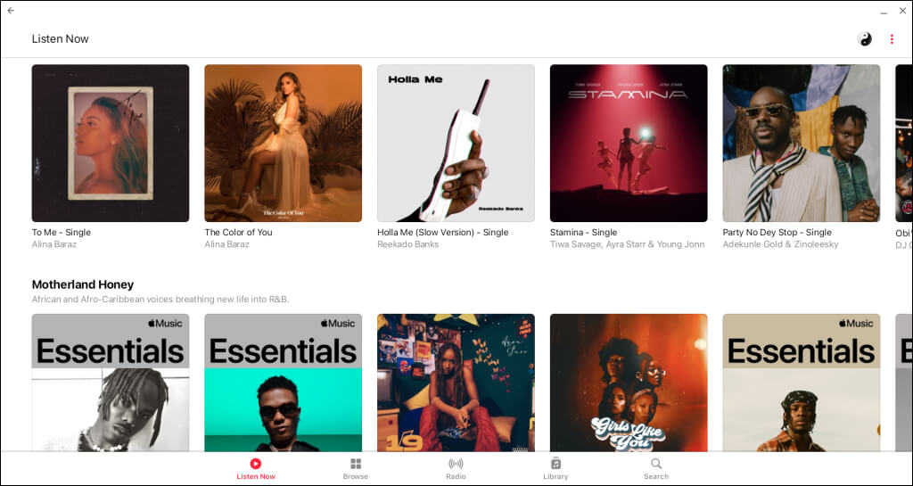 Εάν έχετε συνδρομή Apple Music, μπορείτε να έχετε πρόσβαση στη λίστα αναπαραγωγής και τη μουσική σας βιβλιοθήκη στο Chromebook σας. Η έκδοση Android της εφαρμογής Apple Music είναι συμβατή με το λειτουργικό σύστημα Chrome.