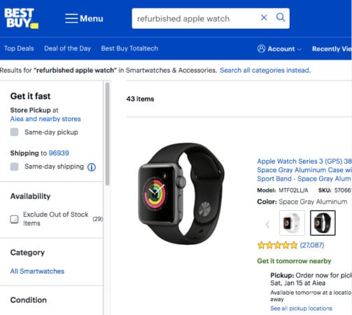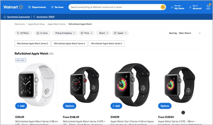 Η Walmart διαθέτει ένα εντυπωσιακό ανακαινισμένο κατάλογο της Apple Watch. Με δωρεάν αποστολή, μπορείτε να χτυπήσετε μια σειρά 4 για τόσο χαμηλά όσο $ 119.92. Παίρνετε χαρακτηριστικά όπως η ανίχνευση πτώσης και το ΗΚΓ σε τιμή ευκαιρίας. Κατά τη γνώμη μου, η σειρά Apple Watch 7 στα 157,91 δολάρια είναι η καλύτερη προσφορά.