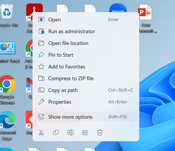 3. Κάντε δεξί κλικ στη συντόμευση, κάντε κλικ στο κουμπίΕμφάνιση περισσότερες επιλογές
