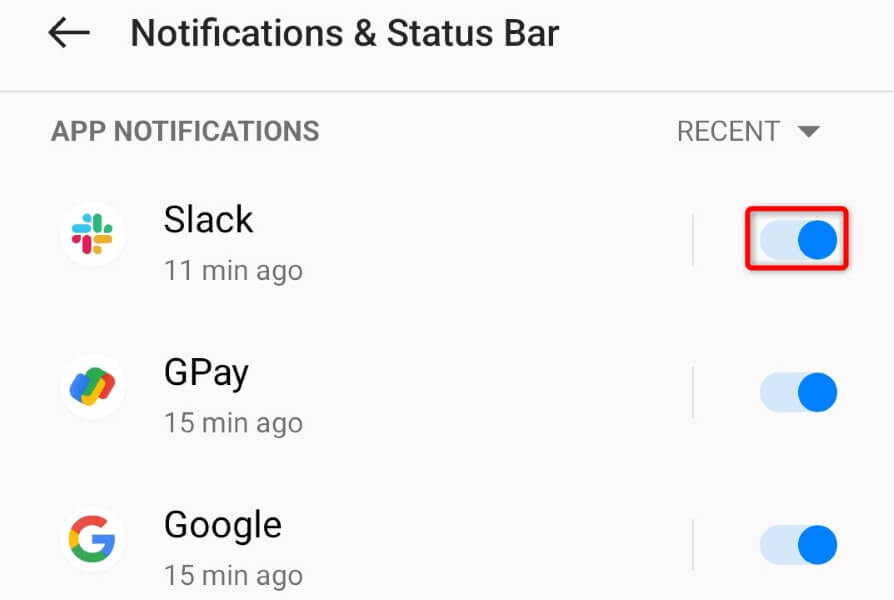 Ένας λόγος για τον οποίο η Slack αποτυγχάνει να παραδώσει ειδοποιήσεις είναι ότι έχετε απενεργοποιήσει τις ειδοποιήσεις για αυτή τη συγκεκριμένη εφαρμογή στη συσκευή σας. Θα πρέπει να επισκεφθείτε το μενού των ρυθμίσεων της συσκευής σας και να εξασφαλίσετε ότι το Slack επιτρέπεται να στέλνει ειδοποιήσεις.
