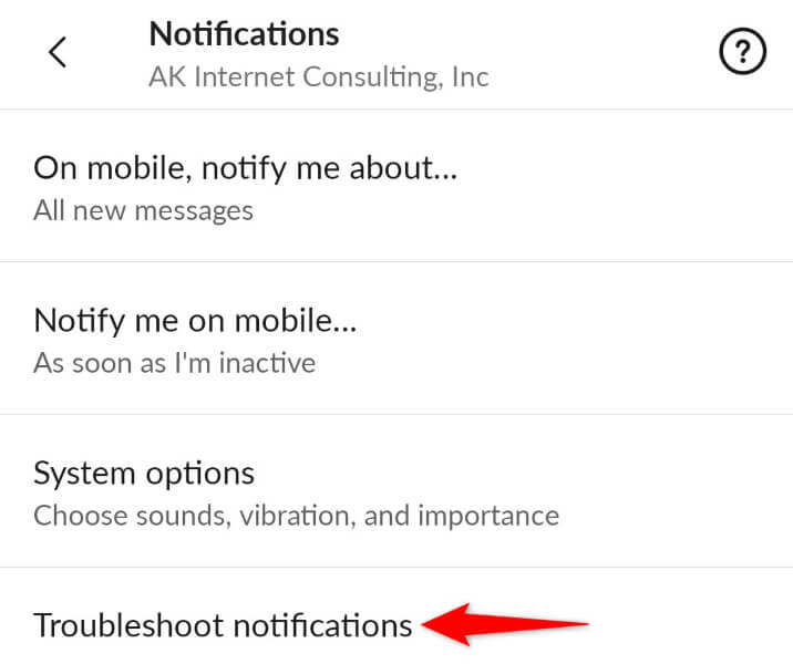 Η εφαρμογή για κινητά του Slack περιλαμβάνει ένα αντιμετώπιση προβλημάτων για να σας βοηθήσει να αντιμετωπίσετε τα θέματα ειδοποίησης. Μπορείτε να χρησιμοποιήσετε αυτήν τη λειτουργία για να βρείτε προβλήματα με τις ρυθμίσεις ειδοποίησης και να τα διορθώσετε για να λαμβάνετε εγκαίρως ειδοποιήσεις.