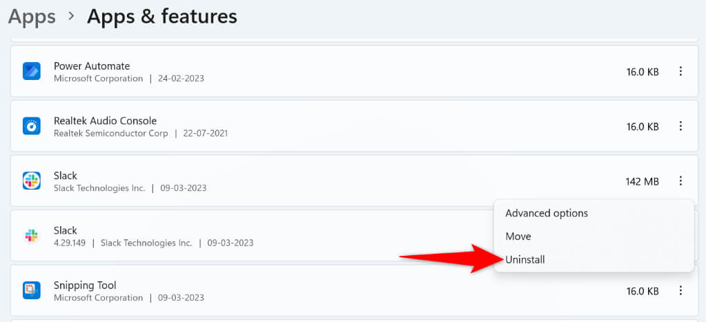 Δεδομένου ότι δεν υπάρχει τρόπος να διορθώσετε με μη αυτόματο τρόπο τα αρχεία εφαρμογών του Slack, μπορείτε να απεγκαταστήσετε και να επανεγκαταστήσετε την εφαρμογή στον υπολογιστή ή το smartphone σας για να επιλύσετε το πρόβλημα. Κάτι τέτοιο θα φέρει σε αρχεία εργασίας, αντικαθιστώντας τυχόν ελαττωματικά αρχεία.