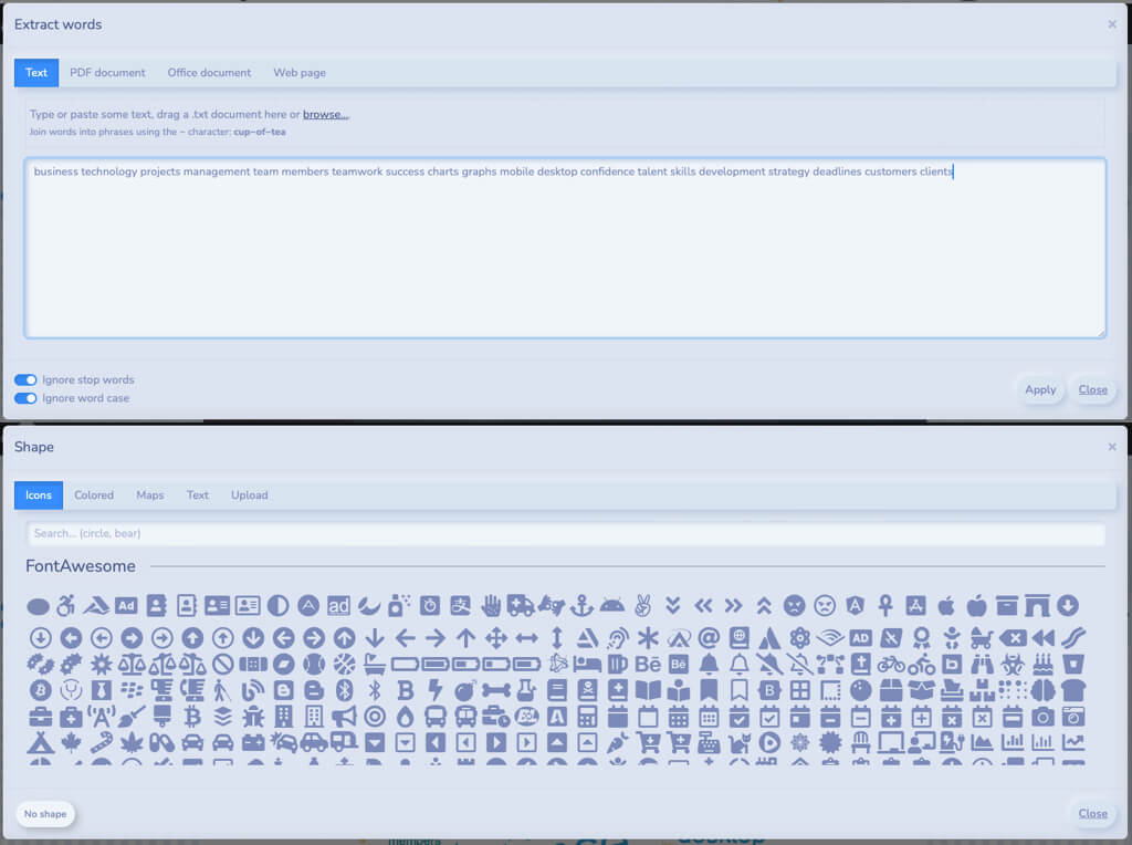 Με το PresentErmedia, μπορείτε να δημιουργήσετε ένα σύννεφο λέξεων επιλέγοντας από μια ποικιλία ελεύθερων σχημάτων. Αυτό είναι ιδανικό αν θέλετε τα λόγια σας μέσα σε ένα δέντρο, κλειδί, τρόπαιο, πεταλούδα, στέμμα ή άλλο σύμβολο.