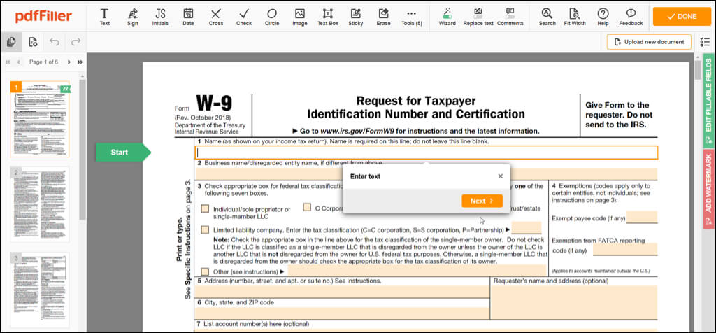 Στη συνέχεια, θα δείτε την φόρμα σας ανοιχτή στον ιστότοπο PDFFILLER με προτροπές για να εισαγάγετε κείμενο ή να υπογράψετε όπου χρειάζεται. Μπορείτε επίσης να χρησιμοποιήσετε εργαλεία επεξεργασίας για να προσθέσετε τα αρχικά σας, ένα X, ένα σημείο ελέγχου, έναν κύκλο ή την ημερομηνία. Επιπλέον, μπορείτε να επισημάνετε, να διαγράψετε, να βγείτε έξω, να σχεδιάσετε, να προσθέσετε σχόλια ή να αντικαταστήσετε το κείμενο.