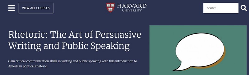 Τώρα, εάν είστε συγγραφέας ή δημόσιος ομιλητής, ίσως θελήσετε να δείτε το online μάθημα της ρητορικής στο Χάρβαρντ. Αυτό το μάθημα έχει σχεδιαστεί για να σας βοηθήσει να αποκτήσετε σε βάθος γνώση σχετικά με τη ρητορική τεχνική γραπτώς και δημόσια ομιλία για να κατασκευάσετε πειστικό περιεχόμενο, είτε σε έντυπα μέσα είτε σε ψηφιακά μέσα.