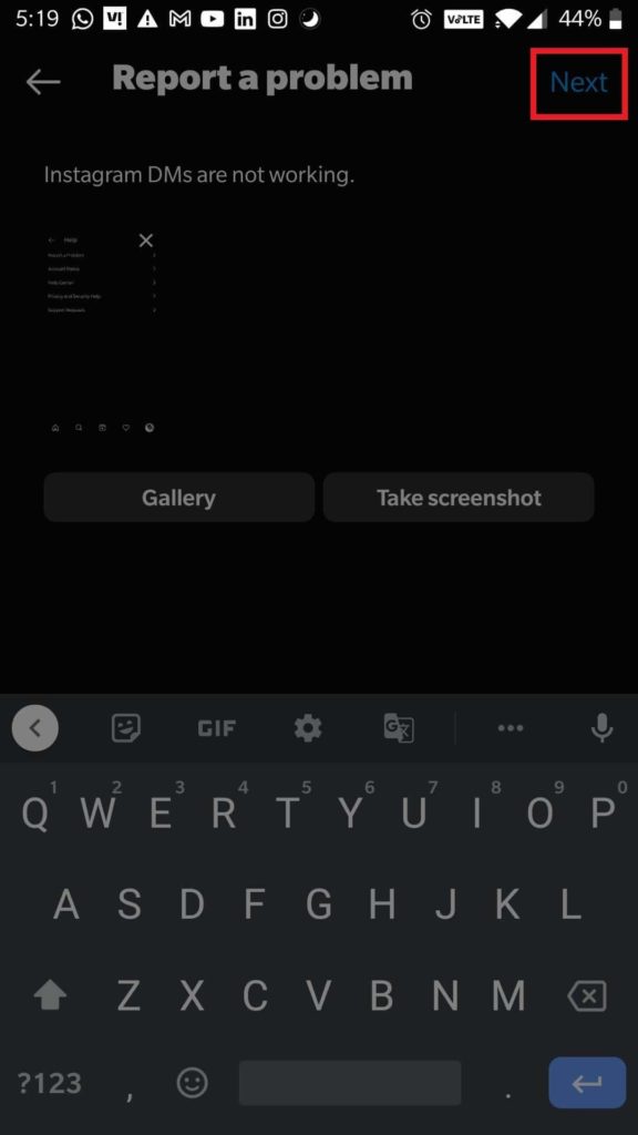 - Τέλος, αρχίστε να περιγράφετε το πρόβλημα που αντιμετωπίζετε με το DM στο λογαριασμό σας και να πατήσετε το επόμενο.