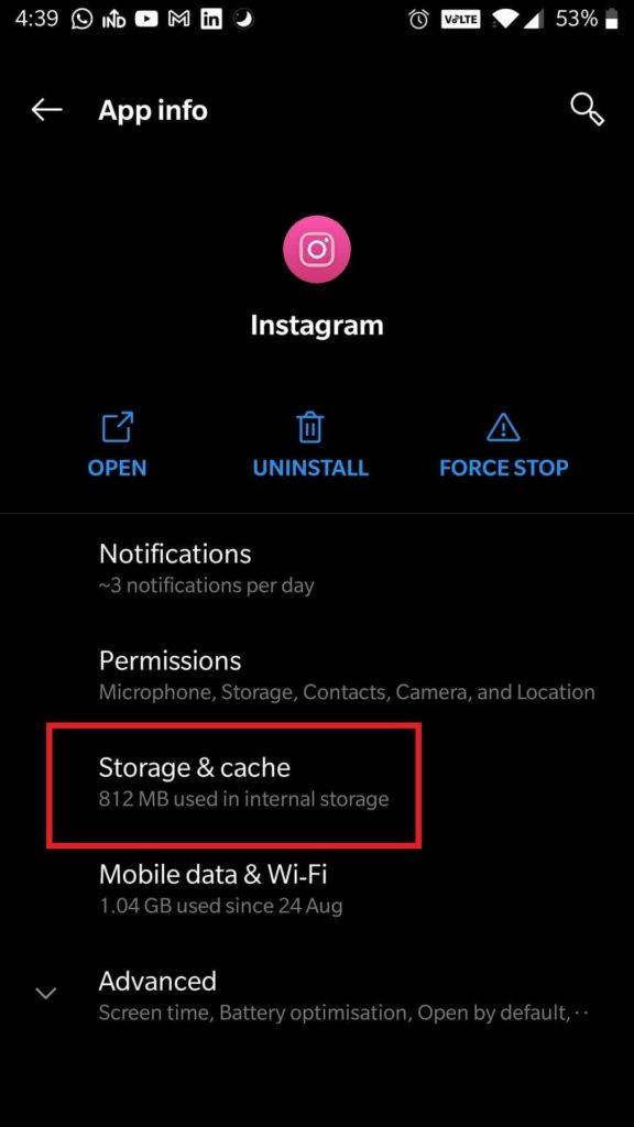 4. Καθαρίστε τα δεδομένα αποθήκευσης & κρυφής μνήμης του Instagram