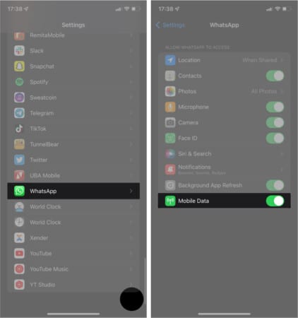 Ανοίξτε το iPhoneΡυθμίσεις→Whatsapp→ ΕναλλαγήΚινητά δεδομένααν δεν ήταν ποτέ ενεργό.