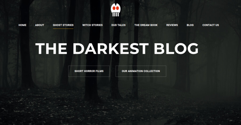 Το πιο σκοτεινό blog παίρνει σοβαρά τα διηγήματα τρόμου. Ο ιδιοκτήτης του ιστότοπου παροτρύνει τους επισκέπτες να στείλουν τις πιο τρομακτικές ιστορίες τους, αληθινές ή φανταστικές. Το μενού προσφέρει ειδικές κατηγορίες όπως ιστορίες μάγισσας, ιστορίες φαντασμάτων, ιστορίες "DUD" (κάμψη του μυαλού) ή ανατριχιαστικές ιστορίες για το όνειρο.