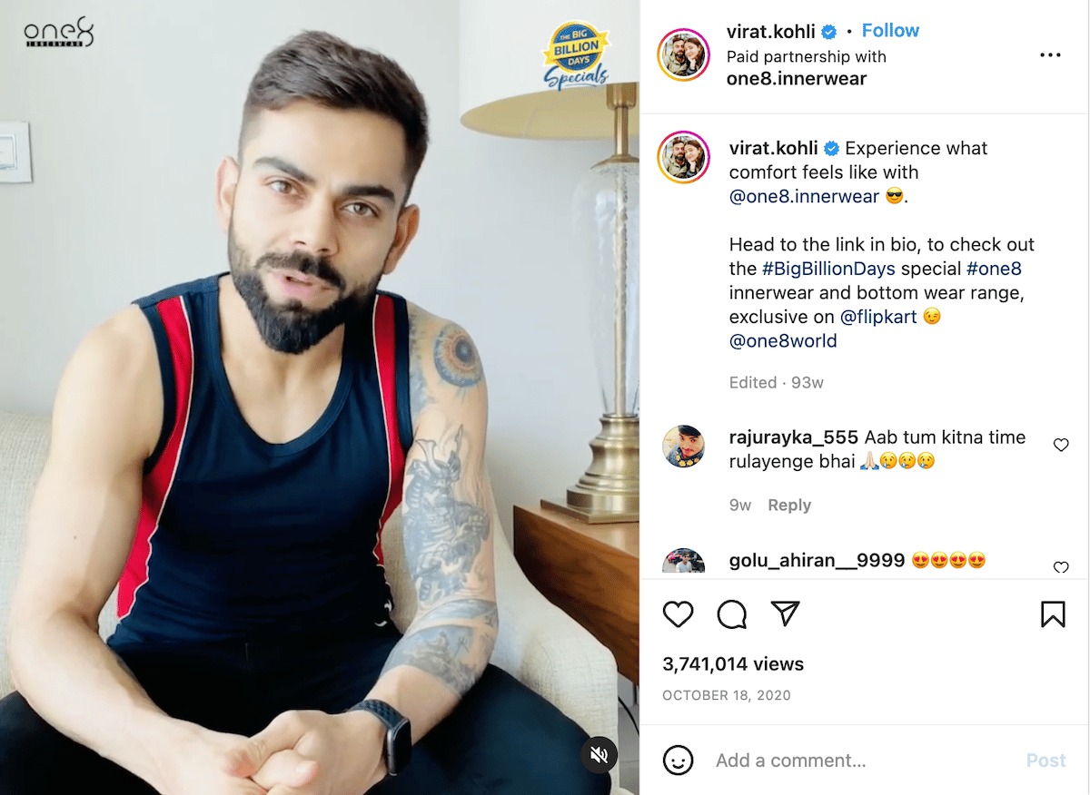 Σε μια εταιρεία κοινωνικών μέσων ενημέρωσης για το Fire-Boltt, ο διάσημος ινδός παίκτης κρίκετ Virat KholiπροωθώΤο ρολόι λέγοντας ότι προσφέρει ευπροσάρμοστα χαρακτηριστικά υγείας. Φορά επίσης ένα ρολόι Apple όπως φαίνεται στις δημοσιεύσεις του Instagram από23 Αυγούστου 2020,18 Οκτωβρίου 2020, και άλλοι.