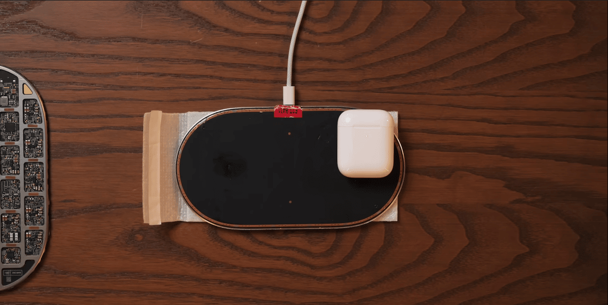 Τα οβάλ σχήματα φόρτισης είχαν ένα τσιπ φόρτισης το οποίο βρίσκεται στα iPhones, μια σύνθετη λογική πλακέτα και ένα μεταλλικό πλέγμα για τη δομή και την ψύξη της συσκευής. Ευτυχώς, το πρωτότυπο AirPower με 22 πηνία φόρτισης εργάστηκε για λίγα δευτερόλεπτα για να τροφοδοτήσει τα AirPods και ένα iPhone χρησιμοποιώντας μόνο ένα πηνίο φόρτισης στο χαλάκι.
