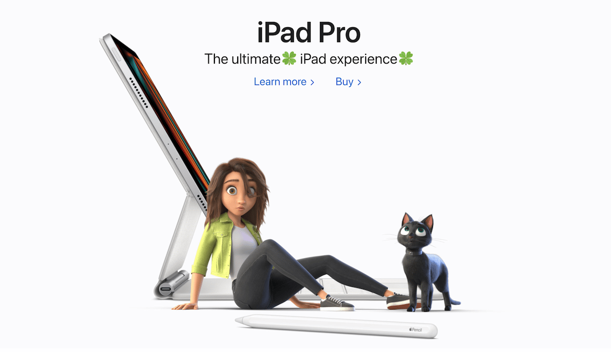 Η Apple προωθεί την "τύχη" με μια εξαγορά πλήρους σελίδας της αρχικής σελίδας της, όπου ο Sam και ο Bob εμφανίζονται δίπλα σε ένα iPad Pro, μαγικά πλάσματα που γλιστρούν πίσω από το iPhone 13, ένα γκρινιάρης αφεντικό κουνελιού σε ένα MacBook και κλιπ της ταινίας που τρέχουν σε τμήματα.