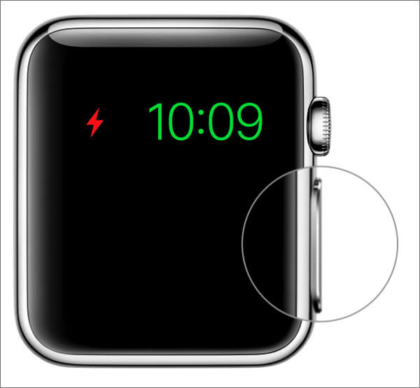 Μπορεί να φαίνεται ασήμαντο, αλλά το ρολόι της Apple σας μπορεί απλώς να έχει εξαντληθεί η μπαταρία. Κατά γενικό κανόνα, θα πρέπει να ελέγξετε τη διάρκεια ζωής της μπαταρίας της Apple Watch. Εάν το ρολόι της Apple εμφανίζει ένα κόκκινο μπουλόνι, δείχνει ότι η μπαταρία χρειάζεται φόρτιση. Συνδέστε το για να φορτίσετε και να περιμένετε περίπου μισή ώρα πριν προσπαθήσετε να το ενεργοποιήσετε.