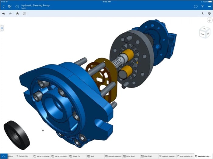 Το Onshape είναι μια μηχανική εφαρμογή iPad CAD για έμπειρους χρήστες και μεγάλες ομάδες. Χάρη στον ασφαλές χώρο εργασίας cloud, μπορείτε να δημιουργήσετε, να επεξεργαστείτε και να συνεργαστείτε με άλλους χρήστες σε πραγματικό χρόνο. Επίσης, μπορείτε να εργαστείτε σε ένα μόνο έργο από πολλές συσκευές. Αλλά πρέπει να έχετε σύνδεση στο Διαδίκτυο. Εκτός αυτού, η εφαρμογή προσφέρει ένα ολοκληρωμένο σύνολο παραμέτρων εργαλείων μοντελοποίησης.