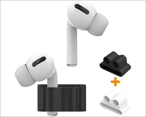 Ο κάτοχος Finenic AirPods είναι κατάλληλος για μινιμαλιστές. Και αντί για το σχεδιασμό μορφής ιμάντων, το σιλικόνη σιλικόνης διαθέτει ένα κλιπ σιλικόνης πλάτους 0,9 ιντσών που σχηματίζεται σε δύο τρύπες αρπαγής ακουστικών που κρατούν τα ακουστικά σας. Ο κάτοχος έρχεται ως ζευγάρι. Ανεξάρτητα από το τι επιλέγετε, παίρνετε πάντα ένα μαύρο, συνδυασμένο με ένα άλλο ελαφρύ χρώμα.