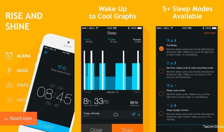 Είναι ένα από ταΚαλύτερη εφαρμογή ξυπνητήρι για iOSΤο οποίο έχει πάνω από 11 εκατομμύρια λήψεις στο App Store, το Smart Scred Clock σας δίνει ειδική προσαρμογή με τις πάνω από εκατό μελωδίες, καθώς και μερικά εκπληκτικά στατιστικά στοιχεία σχετικά με τους κύκλους ύπνου μας. Ο Sac μπορεί επίσης να καταγράψει όλους τους ήχους του δωματίου τη νύχτα και να σας ξυπνήσει με ένα «καλημέρα» γεμάτο πληροφορίες, όπως ο καιρός και οι παράμετροι που παρατηρήθηκαν κατά τη διάρκεια του κύκλου ύπνου σας.
