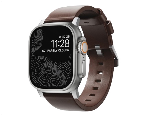 Μια δερμάτινη μπάντα είναι ένα διαχρονικό αξεσουάρ Apple Watch που φαίνεται καλό και διαρκεί πολύ καιρό. Το αγαπημένο μου είναι αυτό από το Nomad που είναι φτιαγμένο από ελάχιστα επεξεργασμένο δερμάτινο δέρμα. Αναπτύσσει μια κλασική πατίνα με το χρόνο που φαίνεται μοναδικό και πολυτελές.