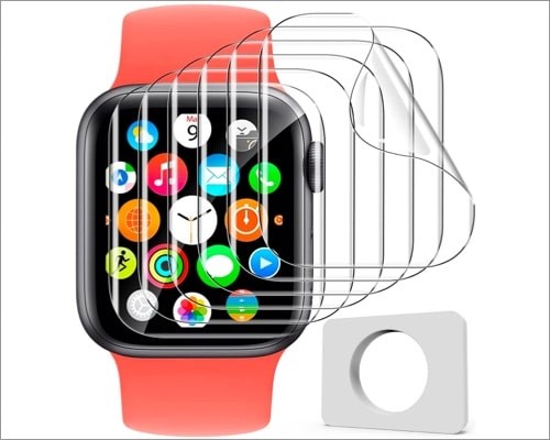 Επιπλέον, ένας προστάτης οθόνης κατά του δακτυλίου είναι ένα βασικό αξεσουάρ για τη διατήρηση του ρολογιού Apple σας ανθεκτικό στο πετρέλαιο και την εφίδρωση. Η σκληρή ταινία 9H έρχεται σε τριών πακέτων. Επιπλέον, η εταιρεία είναι σίγουρη για την προστατευτική της ταινία και προσφέρει δωρεάν εγγύηση αντικατάστασης ζωής, καθώς και εγγύηση χρημάτων.