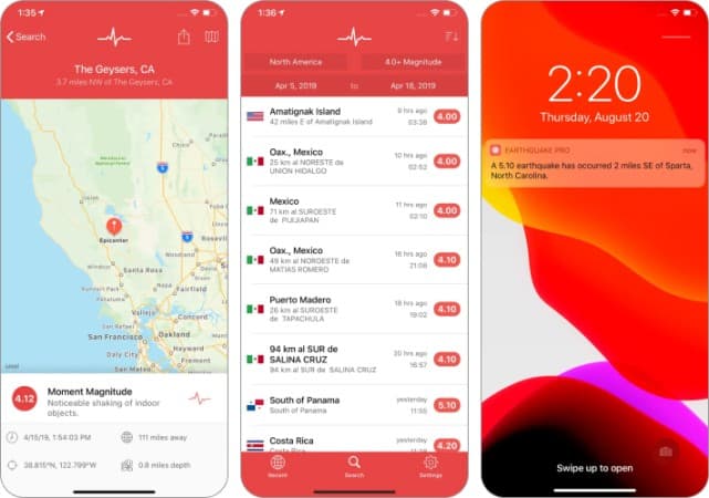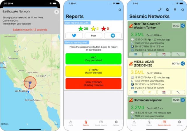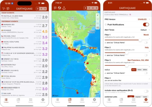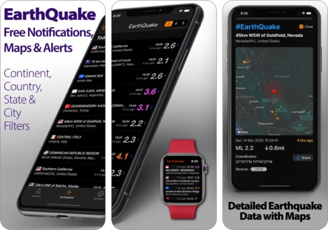 Αυτό που μου αρέσει περισσότερο για την εφαρμογή είναι ότι μπορείτε να προσαρμόσετε την εφαρμογή, συμπεριλαμβανομένων ειδοποιήσεων, φίλτρων, καταλόγων και χαρτών και αναζήτηση σεισμών ανά τοποθεσία. Επιπλέον, το Widget Today δείχνει δεδομένα συνοπτικών σεισμού. Μπορείτε να μοιραστείτε ειδοποιήσεις προειδοποιήσεων μέσω SMS, email, Facebook και Twitter. Η διεπαφή είναι κατάλληλη για το iPad και συμβατό με το Apple Watch.