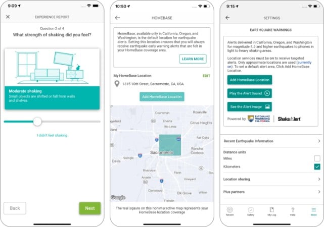 Εάν ζείτε στην Καλιφόρνια, το Όρεγκον και την Ουάσινγκτον, η εφαρμογή MyShake είναι ιδανική για να αποκτήσετε ειδοποιήσεις έγκαιρης προειδοποίησης σεισμού. Υποστηρίζεται από το Γραφείο Υπηρεσιών Έκτακτης Ανάγκης της Καλιφόρνια. Η εφαρμογή στέλνει προειδοποιήσεις για σεισμούς με εκτιμώμενα μεγέθη 4,5 και άνω, όχι για ήπια σεισμούς.