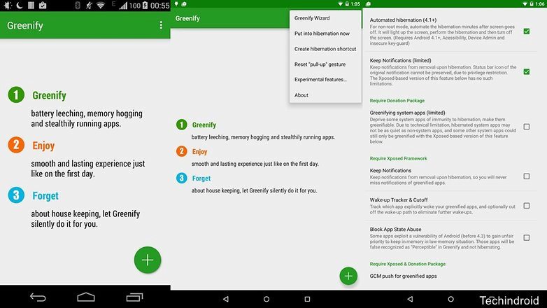 Το Greenify είναι γνωστόΚαλύτερη εφαρμογή εξοικονόμησης μπαταριών και πολύ ισχυρήΑπό τότε που ξεκίνησε με το Kitkat Android. Με πρόσβαση ριζών, μπορεί να βελτιστοποιήσει βαθιά τις εργασίες φόντου. Το Greenify είναι επίσης διαθέσιμο σε μη ριζωμένα τηλέφωνα. Αυτή η εφαρμογή σάρωση για ανεπιθύμητες διαδικασίες που δεν χρειάζονται καιΒάλτε την αδρανοποίηση. Με αυτόν τον τρόπο η εφαρμογή δεν ξοδεύει περιττούς πόρους μέχρι να χρησιμοποιηθεί ξανά.