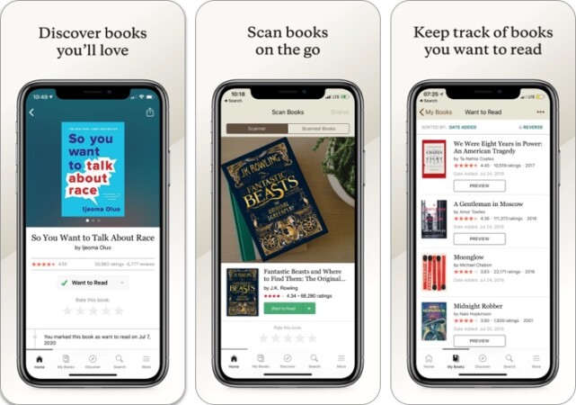 Αυτό που είναι συναρπαστικό είναι το χαρακτηριστικό του σάρωση βιβλίων! Σας επιτρέπει να σαρώσετε τον γραμμικό κώδικα ενός βιβλίου από ένα κατάστημα ή βιβλιοθήκη και να δείτε τις κριτικές του στην εφαρμογή πριν την αγοράσετε. Επιπλέον, μπορείτε να γίνετε φίλοι ομοϊδεάτες, να ακολουθήσετε τους συγγραφείς και άλλους αναγνώστες και ακόμη και να ασχοληθείτε μαζί τους μέσω σχολίων.