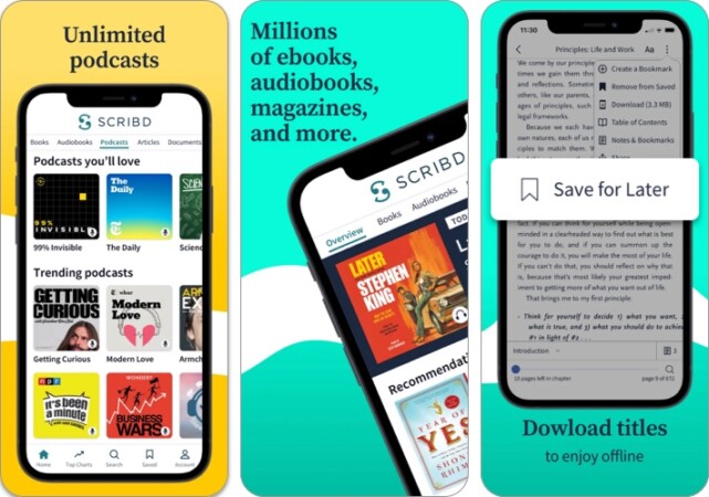 Το Scribd διαθέτει μερικά από τα πιο μεταμορφωτικά βιβλία της ζωής. Πράγματι, είναι η εφαρμογή να ανιχνεύει για βραβευμένα βιβλία. Το Scribd διαθέτει επίσης ενότητα Audiobook και Podcast αν προτιμάτε να ακούσετε τι θα έχετε διαβάσει αντ 'αυτού.
