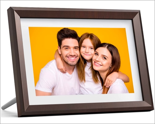 Αν ψάχνετε για ένα πλαίσιο υψηλής ποιότητας σε προσιτή τιμή, τότε το Brookstone Photoshare είναι μια εξαιρετική επιλογή που πρέπει να λάβετε υπόψη. Διαθέτει οθόνη 10,1 ιντσών που μπορεί να εμφανίζει εικόνες σε ανάλυση 1280 × 800 εικονοστοιχείων που επιτρέπουν στους χρήστες να μοιράζονται εικόνες απευθείας από τα smartphones τους. Αυτό το premium μαύρο ξύλινο πλαίσιο με γκρίζο σχέδιο μπορεί να κρατήσει περισσότερες από 5.000 εικόνες στην εσωτερική αποθήκευση 8GB.