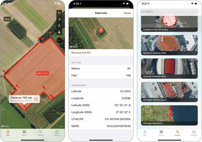 Είναι βολικό για χαρτογράφηση ορίων γης/οικιακών ορίων, γεωργικών πεδίων ή άλλων αποστάσεων/περιοχών. Μπορείτε επίσης να σχεδιάσετε οποιοδήποτε σχήμα στο χάρτη και να υπολογίσετε την περιοχή. Επιπλέον, η λειτουργία παρακολούθησης σας επιτρέπει να υπολογίσετε την απόσταση ή τις περιοχές απλά μετακινώντας.