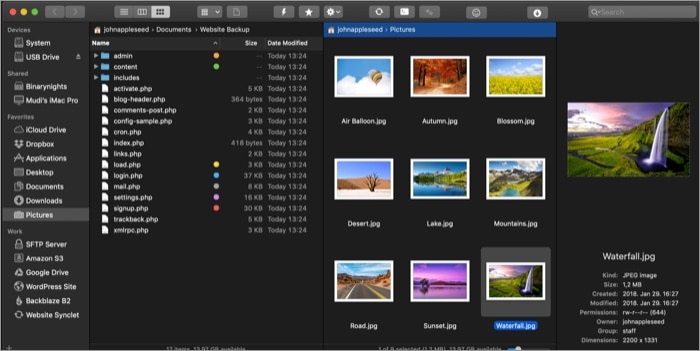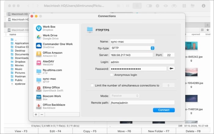 Ο Commander One είναι κυρίως κατάλληλος για όσους εργάζονται με WebDAV, SFTP και περισσότερα πρωτόκολλα. Απλά συνδέστε την εφαρμογή με την υποστηριζόμενη υπηρεσία cloud και αρχίστε να μετακινείτε, να διαγράφετε και να διευθετείτε αρχεία. Επιπλέον, μπορείτε να απολαύσετε μια διεπαφή διπλού πλαισίου σε μια μεγάλη οθόνη για να διαχειριστείτε αρχεία.