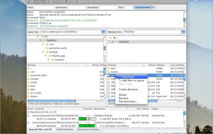 Απελευθερώθηκε το 2001, το FileZilla βρίσκεται στην αγορά για περισσότερα από 18 χρόνια (ναι, το ακούσατε σωστά!). Είναι ένας από τους πιο δημοφιλείς και παλαιότερους πελάτες FTP για Mac. Η μεγάλη μου λαϊκή πίεση με το FileZilla είναι ότι έχει μια ξεπερασμένη διεπαφή χρήστη σε σύγκριση με τους αντιπάλους. Το λογισμικό είναι το παλαιότερο στην αγορά και διαθέτει μια ενεργή κοινότητα για να αντιμετωπίσει τις ερωτήσεις και τα ερωτήματά σας.