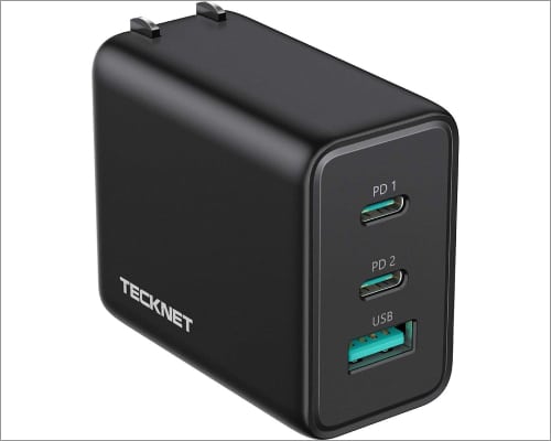 Το Tecknet 65W Gan Wall Charger προσφέρει δύο θύρες USB-C PD 3.0 και μία θύρα USB-A. Το MacBook Pro θα χυθεί από μία μόνο θύρα USB-C από 0% έως 100% σε δύο ώρες, χάρη στην ενσωματωμένη τεχνολογία PPS. Είναι 50% μικρότερο από έναν τυπικό φορτιστή. Εκτός αυτού, η τεχνολογία GAN μειώνει το μέγεθος, το βάρος, την παραγωγή θερμότητας και την κατανάλωση ενέργειας.