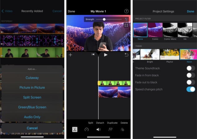 Αν και μια εφαρμογή iOS και iPados, η Kinemaster υιοθετεί την προσέγγιση των εφαρμογών επεξεργασίας βίντεο Mac/PC, με προβολή χρονολογικού γραμμής τοπίου. Σας προσδίδει επιλογές προχωρημένου επιπέδου για σχεδόν όλα, συμπεριλαμβανομένου του κλειδιού Chroma.