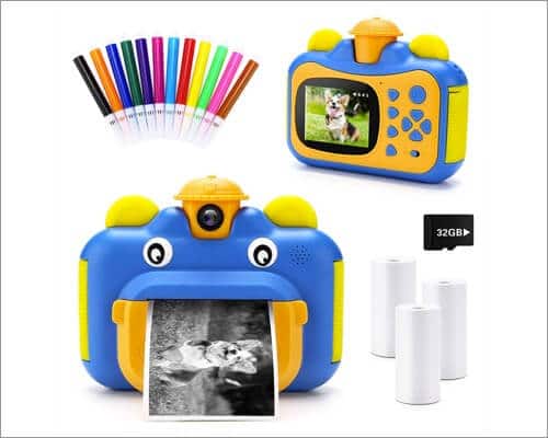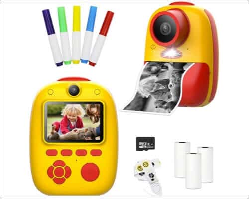 Ακολουθεί μια άλλη αξιολάτρευτη κάμερα Polaroid των παιδιών με μια άμεση λειτουργία εκτύπωσης που επιτρέπει στα παιδιά να τραβήξουν φωτογραφίες/βίντεο και να εκτυπώσουν φωτογραφίες μέσα σε λίγα δευτερόλεπτα. Η οθόνη 2,4 ιντσών επιτρέπει τον έλεγχο των φωτογραφιών πριν από την εκτύπωση για να αποφευχθούν λάθη. Έχει σχεδιαστεί ειδικά για παιδιά ηλικίας 3-14 ετών και διαθέτει οθόνη HD 1080p, σχεδιασμό αντι-σταγόνα και ανθεκτικό κορδόνι για να μεταφέρει.