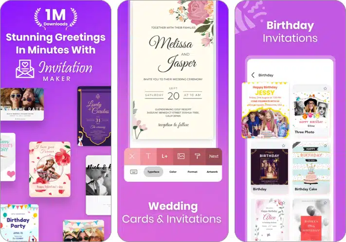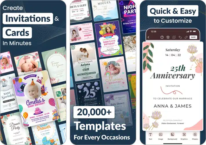 Η δημιουργία μιας καλής κάρτας πρόσκλησης γίνεται μια αρκετά εύκολη εργασία όταν έχετε πολλά εξαιρετικά εύχρηστα εργαλεία για να πειραματιστείτε. Με αυτήν την εφαρμογή, έχετε πρόσβαση όχι μόνο σε 1000 πρότυπα υψηλής ποιότητας αλλά και πολλές επιλογές προσαρμογής.