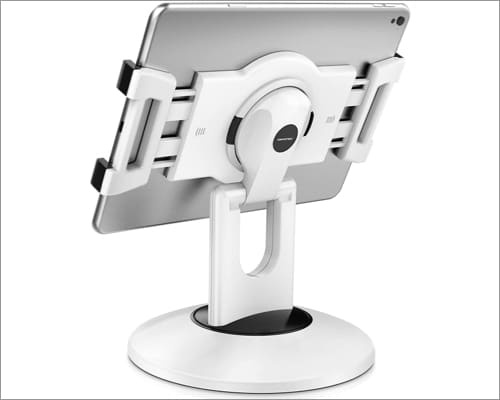 Περαιτέρω, η περιστρεφόμενη βάση 360 ° και ο κάτοχος βραχίονα iPad σε συνδυασμό με ένα πτυσσόμενο βραχίονα παρέχουν απαράμιλλη ρύθμιση για την πληκτρολόγηση ή την προβολή χωρίς να λείπουν καμία γωνίες προβολής. Το iPad, όταν τοποθετείται μεταξύ των αγκύλων, μπορεί εύκολα να μεταβεί από πορτρέτο σε λειτουργία τοπίου σε ένα δευτερόλεπτο.