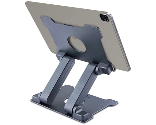Ενώ οι περισσότερες στάσεις του iPad Air είναι ένας πόνος που πρέπει να μεταφέρετε, το Anozer ρυθμιζόμενο και αναδιπλούμενο περίπτερο iPad αλουμινίου είναι διαφορετική. Μπορεί να διπλωθεί στο μέγεθος της τσέπης, και το μικρό αποτύπωμα του το καθιστά τον τέλειο σύντροφο ταξιδιού. Το σώμα του κράματος αλουμινίου και τα μαξιλάρια από καουτσούκ στο κάτω μέρος εξασφαλίζουν ότι δεν ταλαντεύεται σε επίπεδη επιφάνεια.