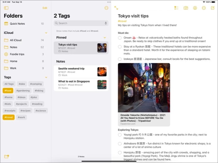 Προσθέστε λίστες ελέγχου, φωτογραφίες και υποφακέλους και μεταφορτώστε διάφορα περιουσιακά στοιχεία, συμπεριλαμβανομένων των εγγράφων, των συνδέσμων και των χαρτών. Όλα θα συγχρονιστούν με το iCloud. Μπορείτε επίσης να μεταφέρετε σημαντικές σημειώσεις και να τις εξασφαλίσετε με τη λειτουργία προστασίας του κωδικού πρόσβασης. Προσωπικά χρησιμοποιώ το Siri για να σημειώσω και να κάνω γρήγορα doodles με μολύβι μήλων.
